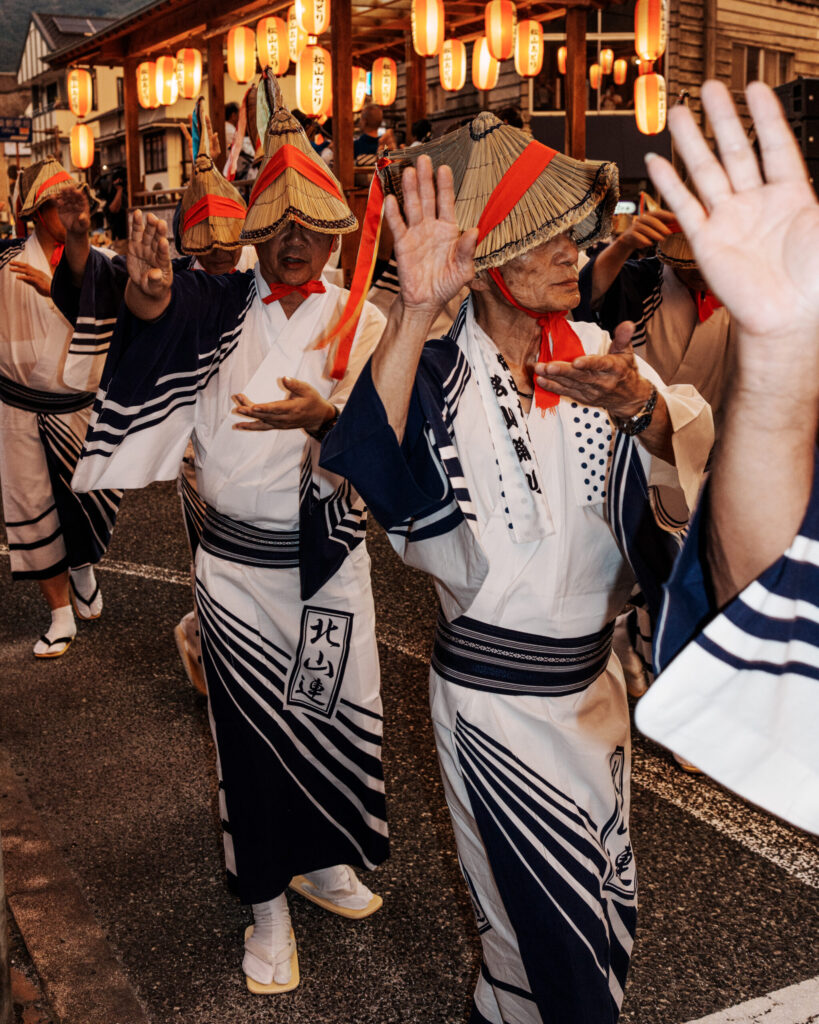 重要無形民俗文化財というだけあって、踊り連のみなさんの踊りは本当に素晴らしいんです。曳山を先頭に、何重にも重なった踊り連が街中を練り歩く姿は、まさに圧巻!その熱気を間近で感じながら、踊り手の真剣な表情や、楽しそうな笑顔を狙って撮影しました。